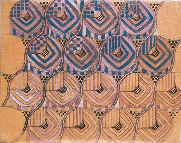 Only 7 of her textile designs survive. This, bold manner unrepresented in the collection with marked stylistic links to the textile designs by Charles Rennie Mackintosh.