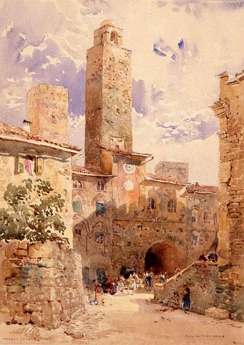 This watercolour is part of a collection of 10 drawings and one etching mostly of the Lake District presented to Victoria Art Gallery, Bath; Ulster Museum, Belfast; New Walk Museum and Art Gallery, Leicester; Royal Institute of British Architects, London; Astley Cheetham Public Library and Art Gallery, Stalybridge and Wakefield Art Gallery. The donors, Miss C M Rivington and the late Miss C L Rivington were cousins to Sir Charles John Holmes.