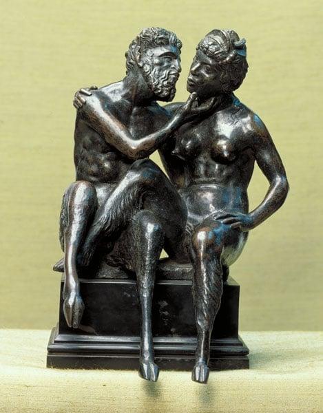 A satyr and satyress embracing, the autograph work of which an inferior model in Budapest, most attractive of many such subjects by Riccio.