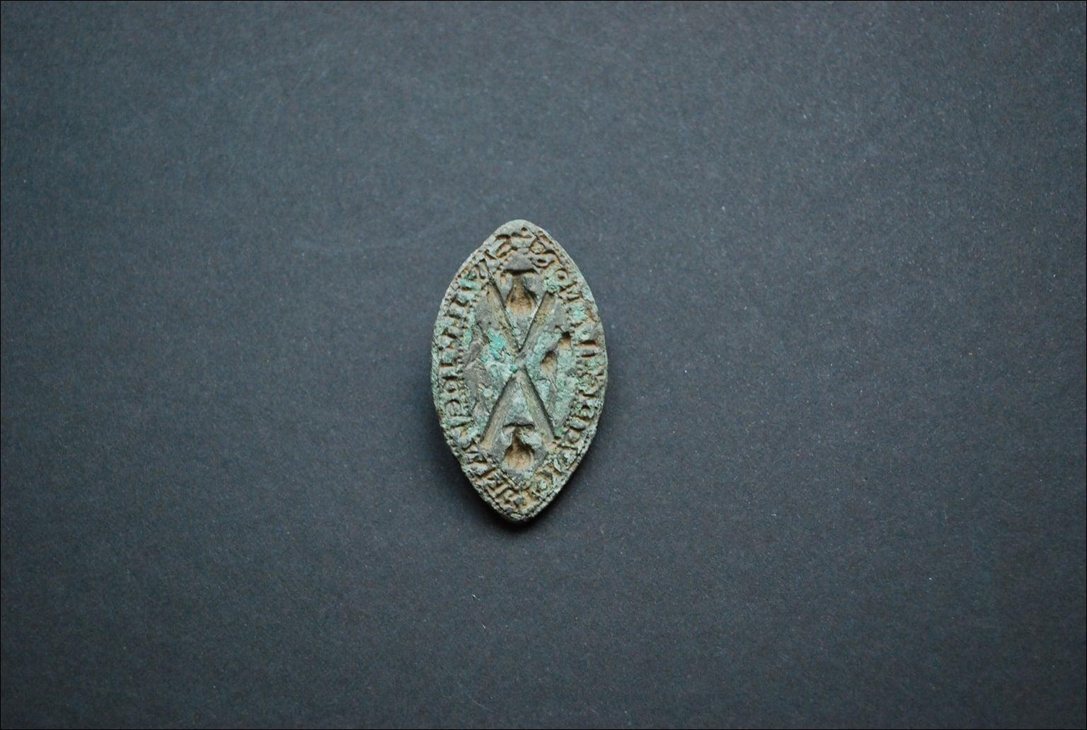 This is the only existing seal matrix belonging to William de Lamberton, Bishop of St Andrews. It is a distinctive example of Medieval craftmanship and design, featuring a saltire with a scallop shell, a metaphor for St Andrews as a site of pilgrimage. The presence of a bird and a fish may allude to LambertonÂ’s connection to Glasgow Cathedral, where he was canon and later chancellor.
