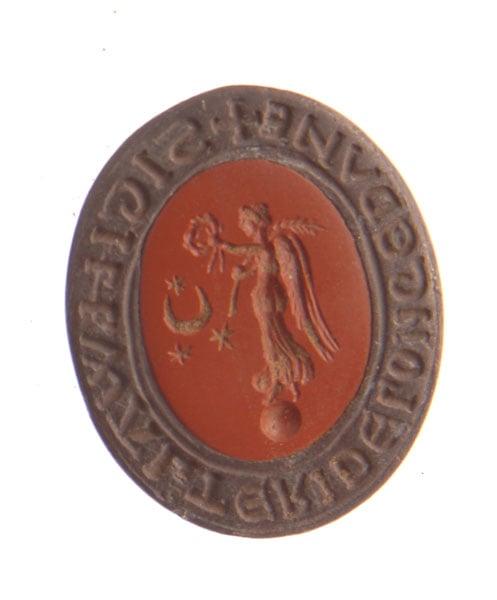 The intaglio is a fine piece of early Roman art which has been reinterpreted in the middle Ages and incorporated into a seal matrix. A high quality intaglio has never been found previously on the Isle of Wight. The gem is cut in the precise classicising style of the 1st century with a depiction of the eternity of the Imperial Victory. A well educated man in the middle Ages would have been aware of the Classical Victory; however he may have interpreted the figure as an angel and the stars as the Heavens glorifying in the birth of the Saviour, Christ.
