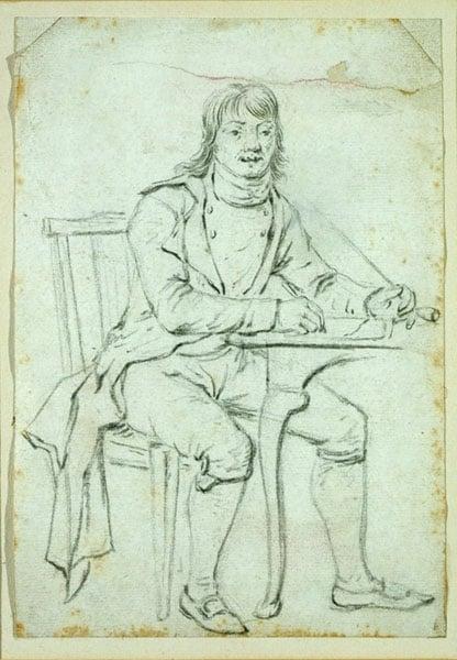 Self portait of Francis Hayman, probably 1740-1750, looking to the left and wearing a green silk robe and knee breeches. Hayman was a founder member of the Royal Academy and its Librarian from 1771-1776.