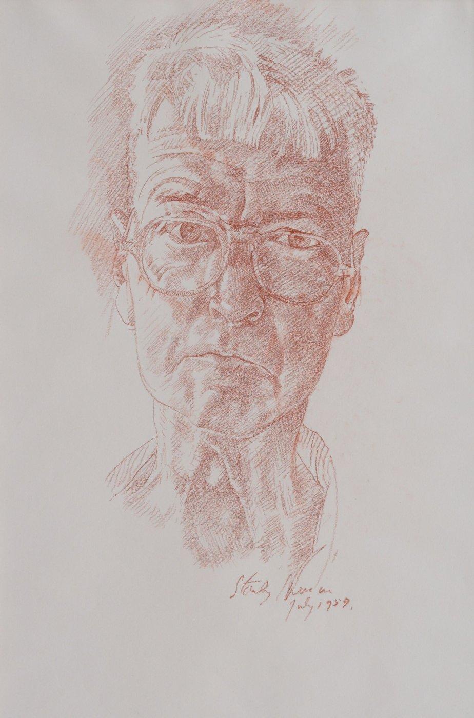 Stanley Spencer drew this intense self-portrait in the final months of his life, before his death from cancer, in 1959.