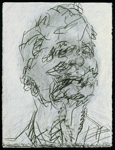 This energetic self-portrait is one of only five known to be in existence in 2002. It is made up of many drawings, the result of countless sittings and rubbings out. Not only does the drawing capture a likeness, but it records the vigorous movement of the artist at work on a drawing.