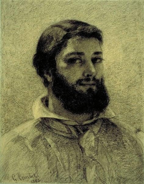 An exceptionally large and interesting drawing by this leader of the French 'realist' School. Portraits by other artists show that he parted his hair on the other side; the discrepancy is explained by the fact that Courbet drew his own head and saw it in a mirror.