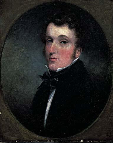 This bust, in a feigned stone oval, portrays the sitter with his head to the left turned towards spectator. Blue eyed, with a fresh complexion, dark brown wavy hair and small side whiskers, he wears a black single-breasted coat, high white shirt collar, and black cravat tied in a loose, negligent bow. Dunthorne was a native of East Bergholt, and a pupil and protege of John Constable.