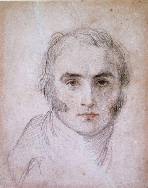 Depicts Lawrence gazing fixedly at the viewer, hair and whiskers slightly dishevelled, and is drawn in the dashing manner of the artist's best portraits.