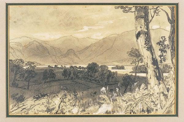7 drawings from early in the artist's career: 1) Derwentwater, Looking into the Jaws of Borrowdale; 2) Derwentwater; 3) Buttermere; 4) Wastdale Head; 5) Grassmere Looking Towards Helm Crag and Steel Fell; 6) Bassenthwaite; 7) Crummockwater.
