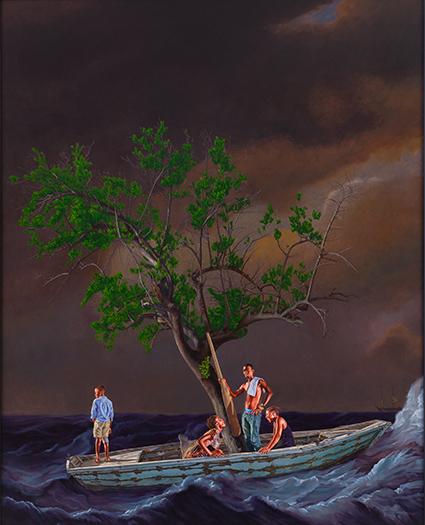 Kehinde Wiley is a New Yorkbased artist who made international headlines in 2017 when he was commissioned to paint the official portrait of Barack Obama for the Smithsonian National Portrait Gallery, Washington. The portrait of Obama was unveiled in February this year. Wiley, who is of Nigerian and African-American descent, grew up in Los Angeles and studied at San Francisco Art Institute and Yale School of Art. He is best known for his large-scale portraits of African-Americans cast in heroic poses in the grand manner. Through these pictures he has created an alternative canon that challenges the absence of people of colour from traditional histories of art. Ship of Fools marks a shift in Wiley’s attention to seascapes and in particular to the collection of works he made for an exhibition at Stephen Friedman Gallery in London in 2017. Each of the seascapes is based on a work in a public collection, reinterpreting, for example, Winslow Homer and JMW Turner, with the white figures in the original paintings replaced by black figures. For Wiley, these figures represent migrants who have set sail in search of better lives. Ship of Fools is the centrepiece of this collection of works. The starting point for the picture is Hieronymus Bosch’s Ship of Fools (1490-1500), now in the Louvre. But while Bosch’s painting is critical of its subjects, Wiley’s raises questions about the risk migrants take to improve their chances of happiness. Royal Museums Greenwich has an important collection of marine paintings and offers a rich context for Ship of Fools. The picture is a post-colonial comment on the genre, questioning many of the assumptions about the glory of imperial might as portrayed in historic holdings. It is the first marine painting by a known black artist to enter the collection and the first work by Wiley to enter a public collection in the UK.