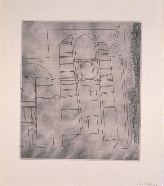 Although better known as a sculptor or painter than as a printmaker, Nicholson dedicated a great deal of time and effort into developing a particular approach to semi-abstract printmaking. This print was made following a trip to Tuscany and shows the elaborate experimental character of NicholsonÂ’s prints with his search for the right inking and the balance of shadows. There are few prints in which NicholsonÂ’s working process and the input of the printer are so clearly visible. This print therefore provides a nearly unique insight into the artistÂ’s approach to printmaking.