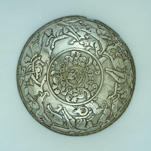 The subjects, in relief, represent the king and three attendants hunting wild animals. From the time of Bahram Gur IV and found in the Swat Valley, North West India.