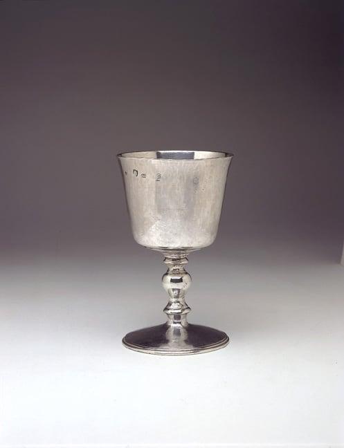 Cup, with deep bowl gradually everted towards the rim, baluster stem, and plain spreading foot with receded edge. One of five gifts to three museums by H Eric Miller through the Art Fund between 1928 and 1946.