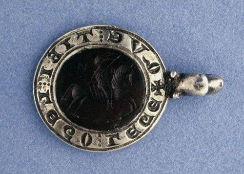 Silver Matrix of a seal of English work, set with a jasper intaglio of horseman, with letters N H ; legend: - 'Quae tibi lego lege.' This work was donated by Max Rosenheim who presented over 170 works to the British Museum through the Art Fund between 1904 and 1911. Max Rosenheim was a financier and part of the Executive Committee of the Art Fund from its inauguration. He was a well known collector of engravings and medals and also Trustee of the British Museum.