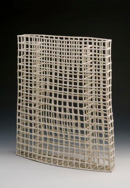 This work is a poetic evocation of the Deben estuary in Suffolk. The form is derived from the cage-like structures used as moorings weighted to the riverbed. The pitted surface of the glaze hints at the corrosive effects of time, weather and flowing water. The form itself, gently distorted during extensive firing at high temperature, also suggests the presence of water passing round and through the object. This work joins the museum's collection of contemporary craft which includes influential and interesting makers from outside Wales as well as Welsh makers.