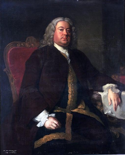 An informal three quarter length portrait of Sir James Dalrymple (1692-1751) in situ in the dining room at Newhailes shortly before James Norie the Elder painted the room in 1739. The sitter was Auditor of the Court of Exchequer in Scotland. Part of a grant for 4 portraits.