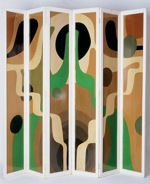 The screen is typical of Clendinning's 1960s interior design work in collaboration with Ralph Adron. The design is very reminiscent of the 'supergraphics' in the dining room Clendinning designed for his own home in the 1960s. Purchased by the Art Fund with the assistance of the Esmée Fairbairn Foundation.