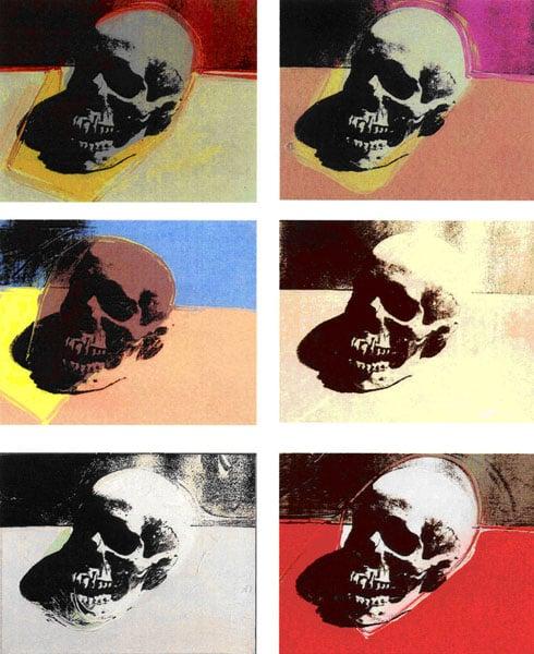 Six paintings of skulls. One of 232 works by Andy Warhold including silkscreens, photographs, drawings and posters to be displayed in 6 rooms. These works form part of a collection called ARTIST ROOMS consisting of 725 works of art formerly owned by Anthony d'Offay which will be divided into 50 rooms by 25 artists plus 10 additional works. Acquired jointly by Tate and National Galleries Scotland through The d'Offay Donation with assistance from the National Heritage Memorial Fund and the Art Fund 2008. As well as showing artistsÂ’ work in depth, the unique intention behind this acquisition is that the rooms will tour the UK, as well as being shown in NGS and Tate. ARTIST ROOMS was bought for £26,530,219 with a grant of £1 million from the Art Fund.