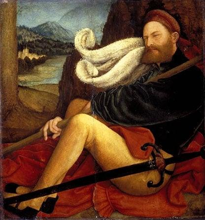 In this painting, a sleeping soldier lies against a tree in front of a landscape background. The sleeping figure rests on a cloak and his sword is attached to his side. This painting was part of a collection of 117 works belonging to the industrialist and engineer F.D. Lycett Green and bequeathed to York through the Art Fund, in 1955, in recognition of the remarkable efforts made after the Second World War by its curator to transform it into a gallery of international importance.