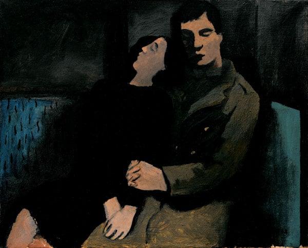 The work depicts a soldier in a greatcoat on a railway bench with his girlfriend asleep on his shoulder. They wait in the dark for the milk train that will take him away. It is almost certainly auto-biographical as Scott was separated from his wife Mary in 1942 after he joined the Royal Engineers. Scott's wartime paintings were either a visualisation of his own inner feelings or his experiences as a soldier.