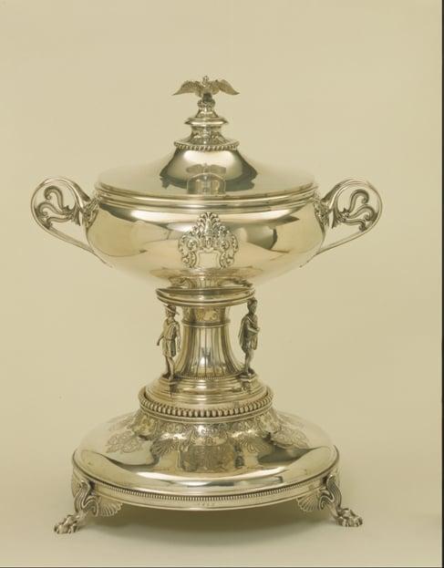 Silver soup tureen, marked with the arms of the Von Waldow family, Prussia. Made by Johann Georg Hossauer, Berlin, after designs by Karl Friedrich Schinkel.