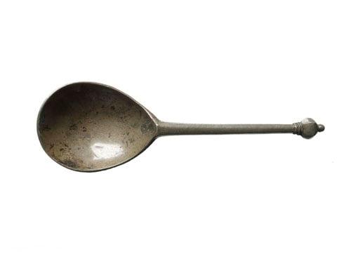 Spoon with Tudor Rose mark dug up on the site of the Old Acquarium in Westminster when excavating the site of Mrs Langtry's theatre. One of two bequests to two museums by T. W. Salt through the Art Fund in 1947.
