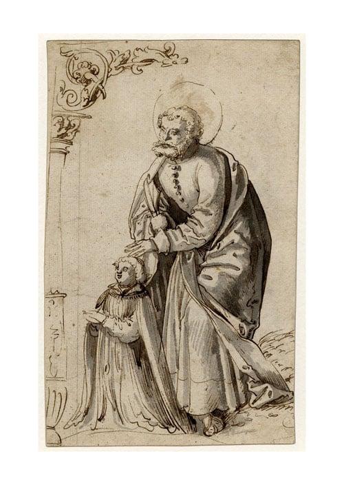 This design for a glass painting is one of 111 drawings bequeathed to the British Museum by Rosi Schilling in 1997. The majority of this collection of drawings formed by Dr Edmund Schilling was bequeathed to the British Museum through the Art Fund by his widow, Mrs Rosi Schilling, in 1993. Schilling was a former curator of the Stadelsches Kunstinstitut in Frankfurt, who emigrated to England in 1937. He was one of the few acknowledged specialists in this country on German graphic art, and built up his collection during the 1940s and 1950s in London when, Northern drawings were unfashionable and could be bought relatively inexpensively. His collection included drawings by major artists such as Hans Baldung and Lucas Cranach.