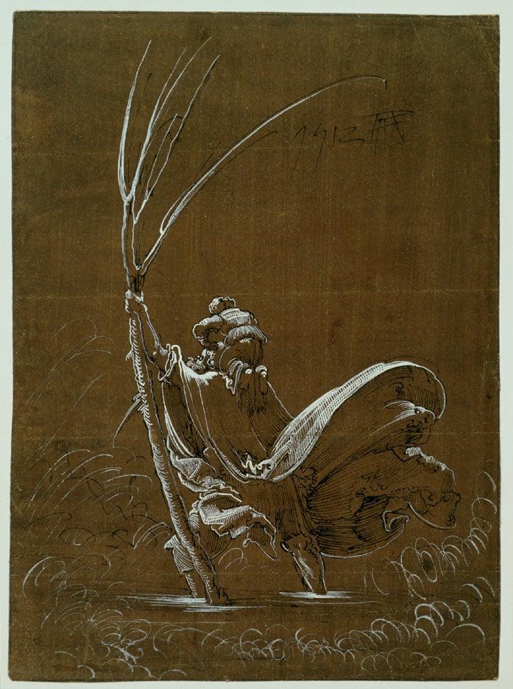 Albrecht Altdorfer, a German printmaker and painter depicts one of his favourite themes in this piece. Unusually, this sheet depicts the Saint from the rear steering his way across the river as he bears the burden of the Christ Child. This drawing is notable for its fluency and elegance especially in the white highlights that delineate the Saint's staff and billowing folds of his drapery. Altdorfer was a leading figure of the Danube school of artists and is best known for his pioneering achievements in landscape.