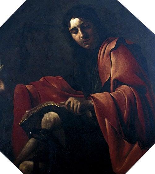 The format of this painting is octagonal. St. John is revealed to the spectator in three-quarter view. He sits reading and his attribute, the eagle is at the base of the painting. This painting was part of a collection of 117 works belonging to the industrialist and engineer F.D. Lycett Green and bequeathed to York through the Art Fund, in 1955, in recognition of the remarkable efforts made after the Second World War by its curator to transform it into a gallery of international importance.