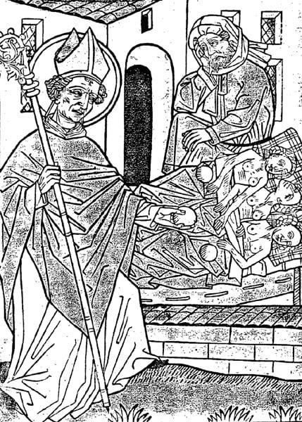 Coloured German woodcut of the 15th century of exceptionally fine quality and good preservation, from the collection of S. Leigh Sotheby, author of 'Principia Typographica'. Purchased by a small number of subscribers for £125 including a grant of £75 from the Art Fund and presented to the British Museum.