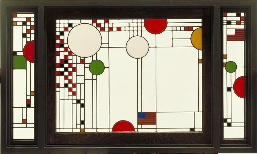 Wright felt stained glass windows were an integral part of any architectural design, more so than any other American Arts and Crafts architect. His most important and innovative window scheme was the 'kinder-symphony', as Wright called it, for the Coonley playhouse (a kindergarten for the children of the owners and those of neighbours). He created a series of more than three dozen windows evoking the balloons, confetti and flags of a passing parade. The balloons charmed the clients although they confessed to finding them 'certainly daring'.