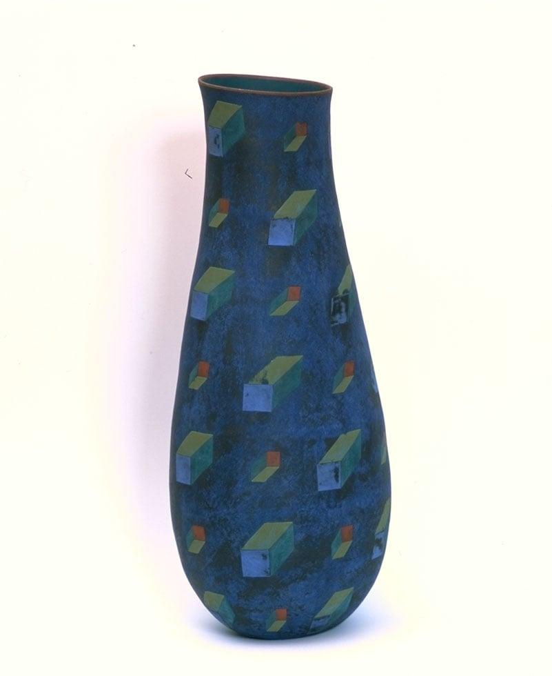 This is an unusually large piece for Fritsch and exemplifies her characteristic interplay between the volume of the vessel and the flat surface on which she paints, such that depth and flatness are simultaneously confirmed and denied.