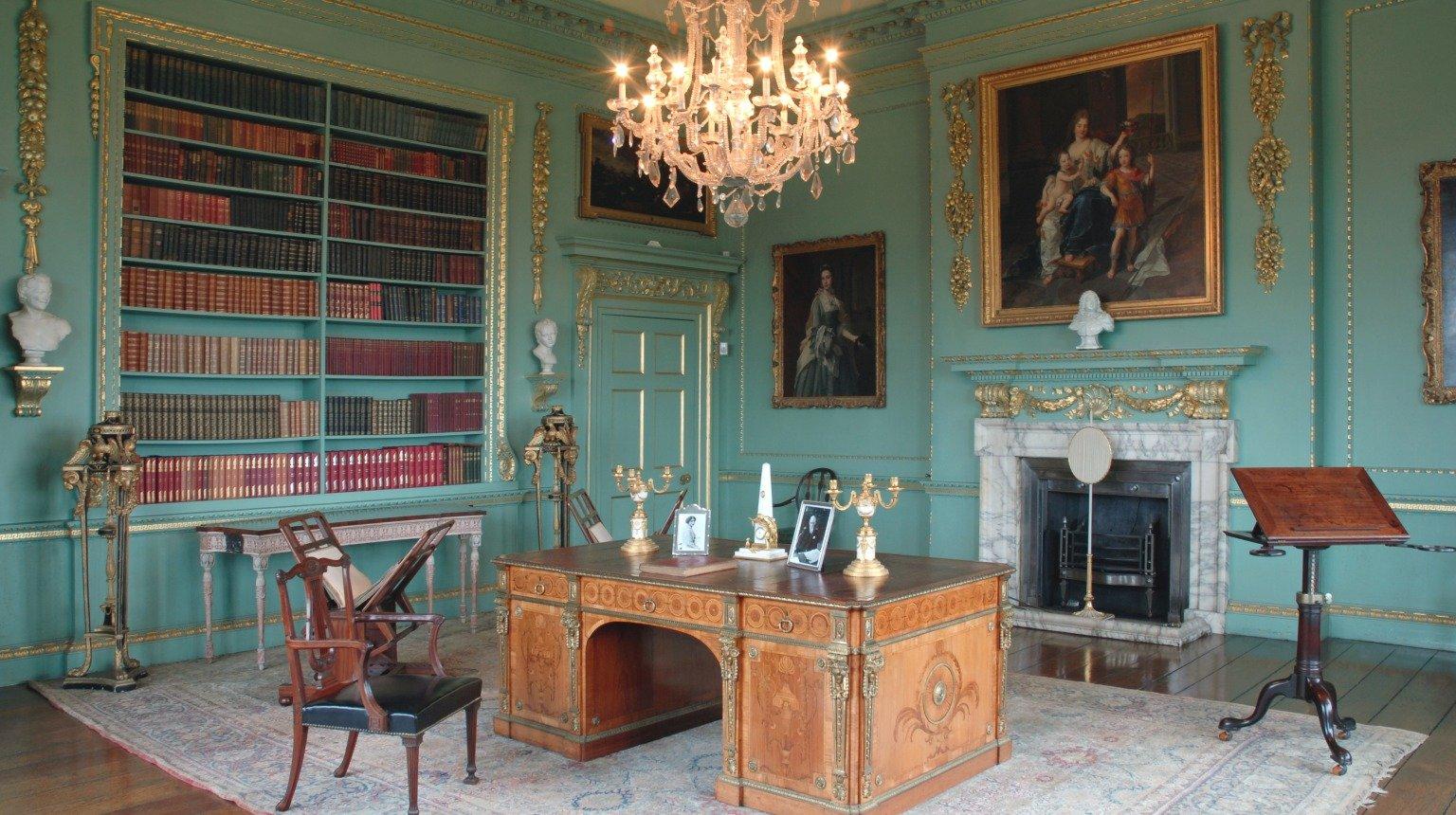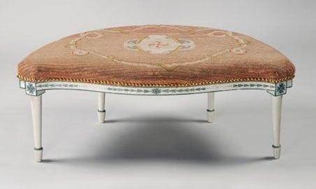 Semi-circular stool. The needlework cover is by Lady Fleming, 2nd wife of Edwin Lascelles. On long-term loan from the Chippendale Society.