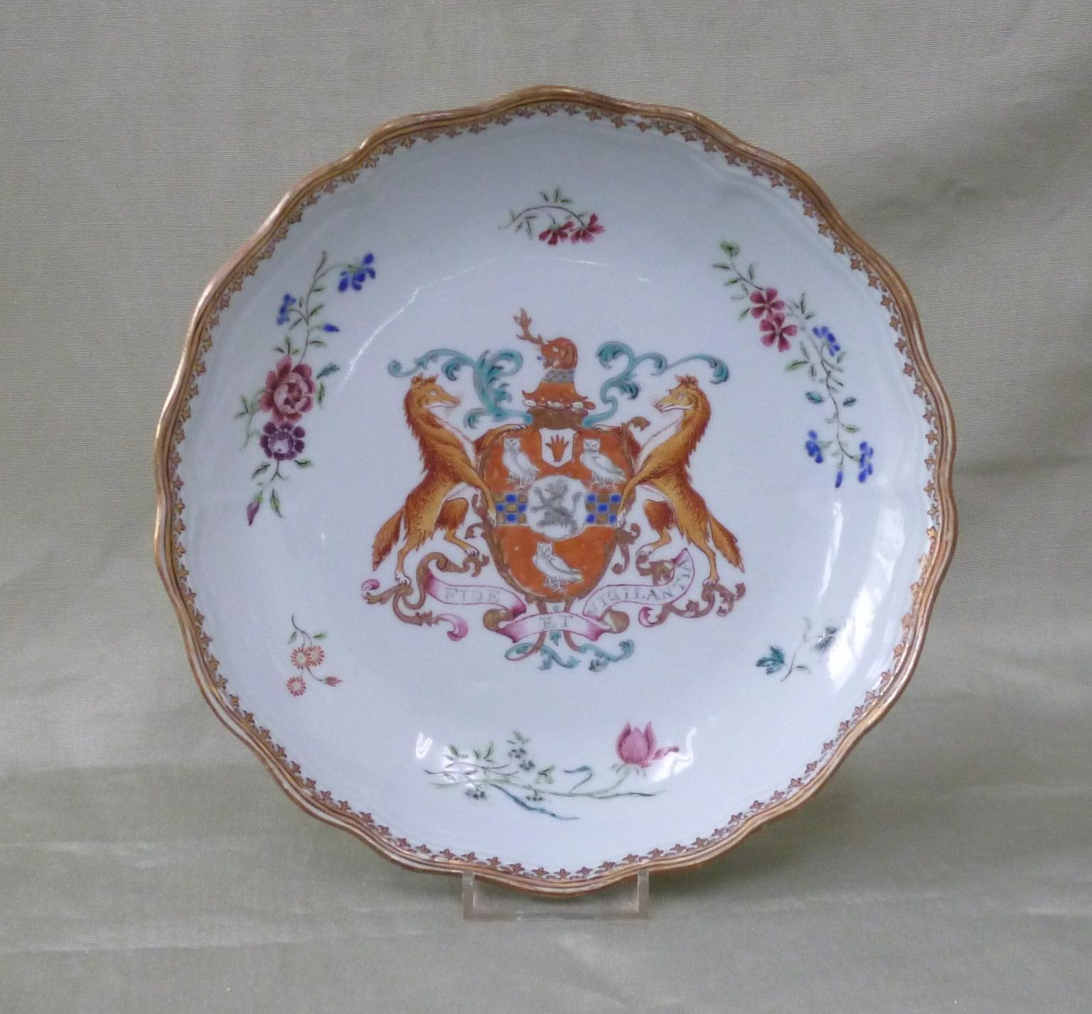 Strawberry bowl and chamber pot from the Stepney Chinese armorial porcelain service
