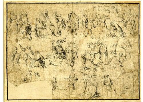 Studies of 8 scenes of martyrdom, St Christopher, and Birth of Christ