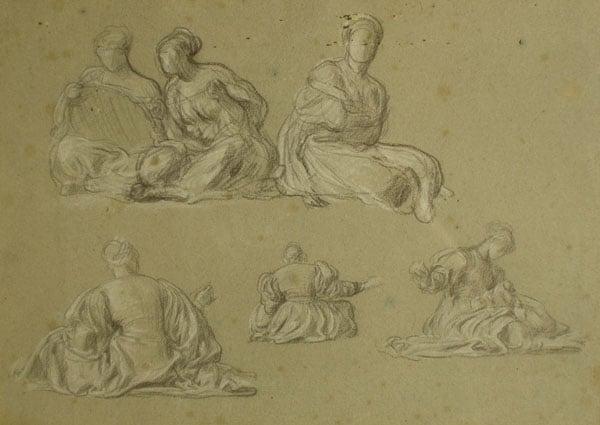 Studies of female figures for 'The Arts of Industry as Applied to War'