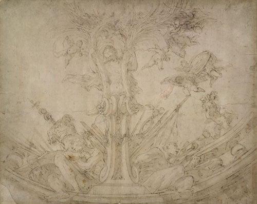 Study for a ceiling decoration with prisoners and trophies, 1600–1699