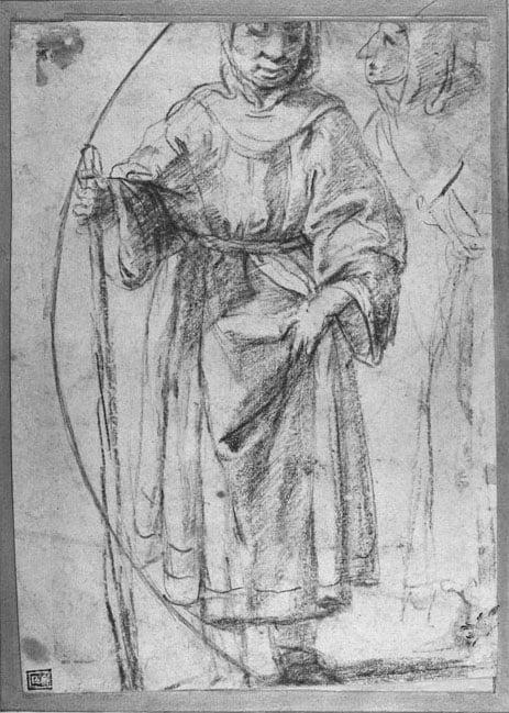 Recto - study of a monk; verso - Study of a nude man and a youth in contemporary costume. One of 5 drawings donated by Sir Kenneth Clark to the Ashmolean in 1937. Kenneth Clark was Keeper of Fine Arts at the Ashmolean from 1931-33. He went on to become the youngest person to be appointed as director of the National Gallery where he remained until after the Second World War in 1945.