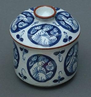 The ritual of tea-drinking in the 1700s enabled its participants to demonstrate their genteel manners and to establish a social bond. The sugar dish or pot, an integral part of tea equipage, was usually made with a matching cover and it is rare that this matching cover has survived, fitting snugly to the pot. This sugar pot, produced in London, has two particularly outstanding features, both of which derive from late Kangxi porcelain, c 1680-1722. First, it is decorated with a bright cobalt blue, reminiscent of the sapphire colour used in late seventeenth-century Jingdezhen wares. Second, the pencilled leaf motif and illustration of a seated figure within an oval frame recall the calligraphic techniques often used by the Chinese on soapstone porcelain. It was the only known example of this design on teaware.