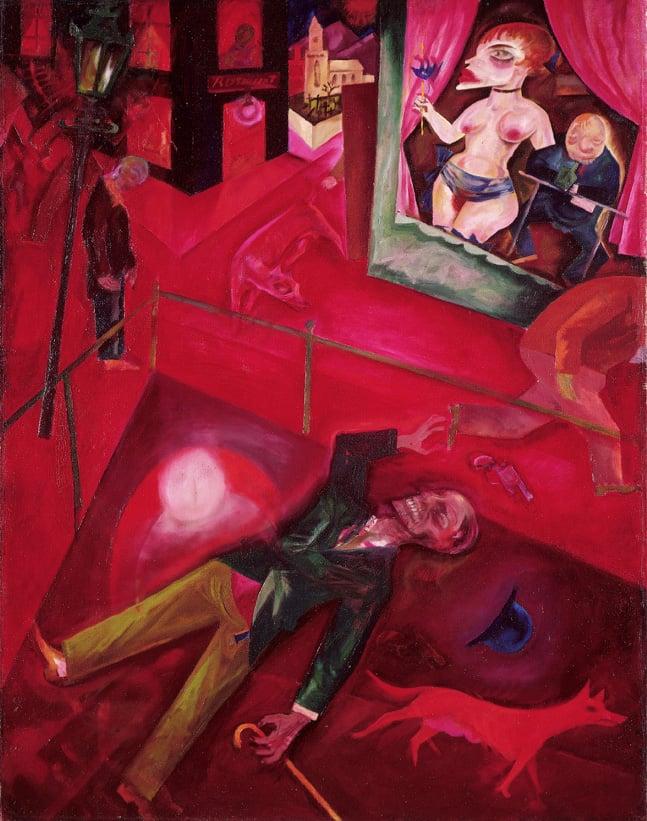 This horrific picture, with its savage imagery, harsh colours and restless composition, represents some of the most important elements in 20th century German art; it reflects the Expressionism of the Brucke and Blaue Reiter movements on the one hand and the disillusion of Berlin Dada on the other. It also anticipates much German art in the post war and Nazi period, particularly the work of Max Beckmann. It is a valuable addition to the Tate collection which has always been weak in this field.