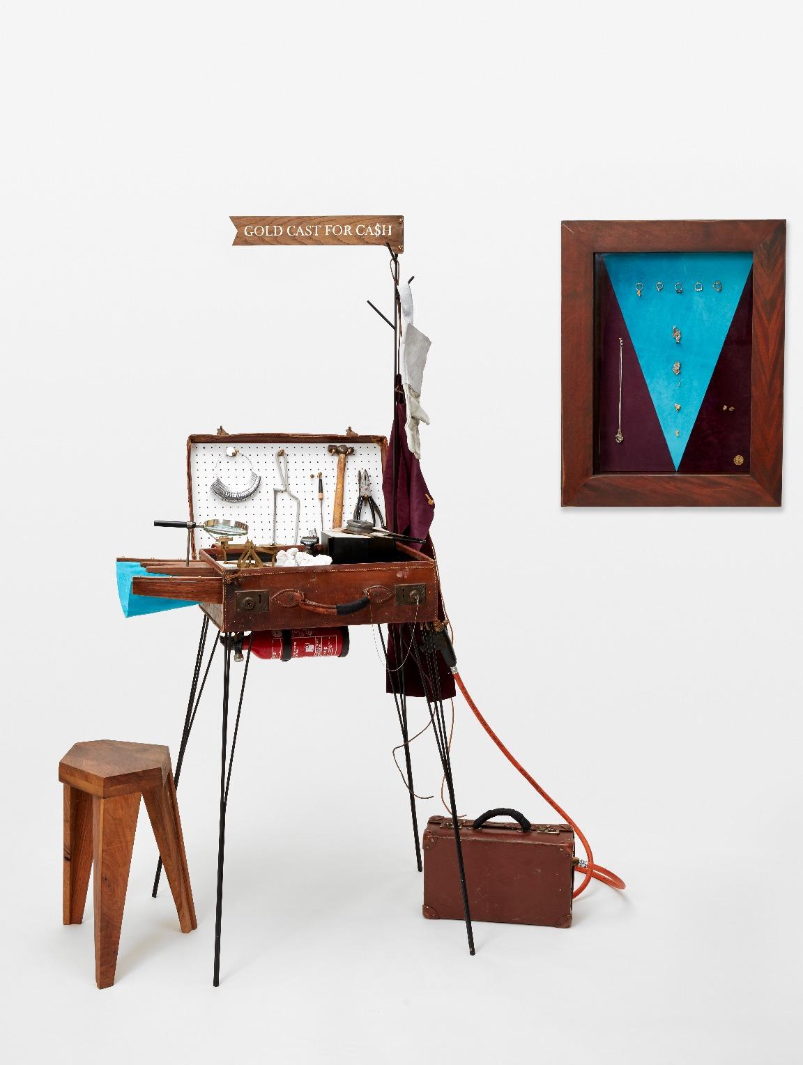 The acquisition of 12 works by 11 makers has been supported by Art Fund. They are Wellpappe Bracelet by David Bielander (nominated by Caroline Broadhead, cost £5,000); Camber-Esker Vessel by Sara Flynn (nominated by Matt Smith, cost £3,600); Coat Rack by Max Frommeld (nominated by Michael Marriott, cost £3,200); Unnecessaries by Eri Funazaki and Danny Flynn (nominated by Angela James, cost £2,700); Caiaphas by Rozanne Hawksley (nominated by Michael Brennand-Wood, cost £2,500); Amulet by Kate Haywood (nominated by James Maskrey, cost £1,200); Rustic Stool by Mark Laban (nominated by Ineke Hans, cost £4,725); Craft Kills by Freddie Robins (nominated by the artist, cost £8,500); Suitcase Foundry by Will Shannon (nominated by John Grayson, cost £7,200); Golden Heart Ring by Castro Smith (nominated by Esna Su, cost £2,000); Large Cup with Handle and Cup with Handle on a Floating Ground by Julian Stair (nominated by Simone ten Hompel, cost £21,600 and £4,050 respectively).