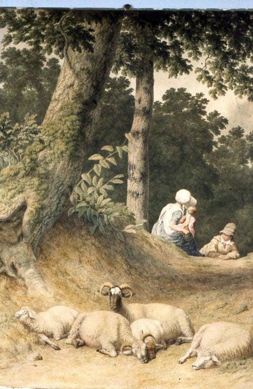 Summer shade - country scene with sheep and children. One of two gifts to two museums by Mabel Chilcott through the Art Fund in 1931 and 1932.