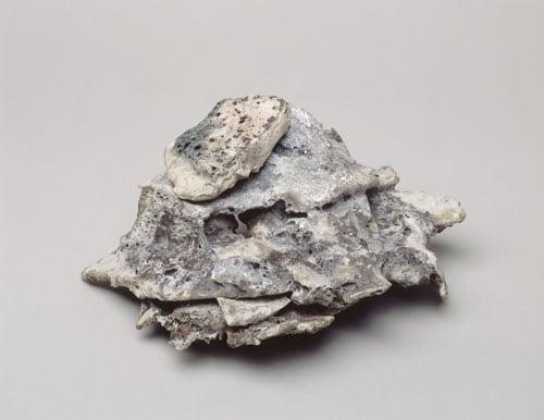 This ceramic tabletop piece by the late Ewen Henderson, resembles some richly-layered geological concretion. Part of a group of three gifts to five museums by Marina Vaizey through the Art Fund between 1995 and 2003.