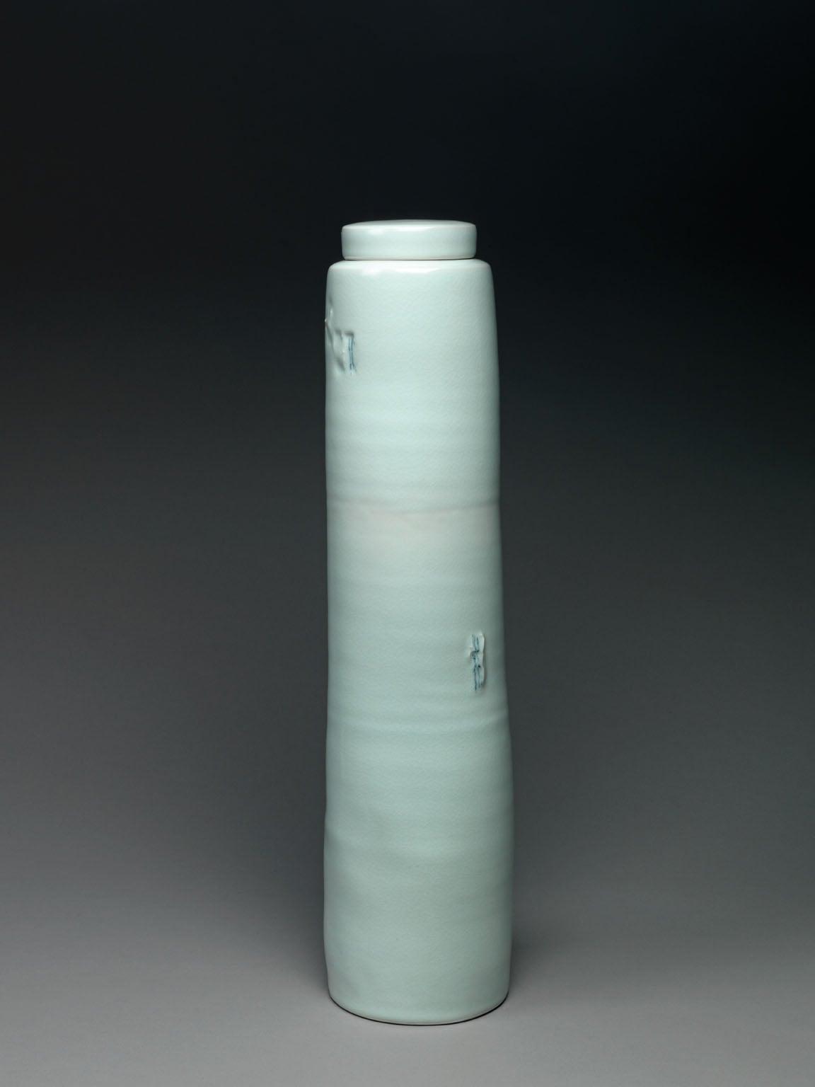 Tall, elegant vessel by the reknowned contemporary potter Edmund de Waal. The subtle assymetries of surface and form are typical attributes of his work.