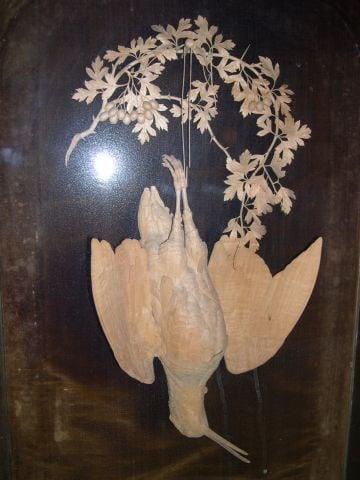 Wallis set up his business in Louth in 1843. He specialised in carving dead game and foliage from a single piece of limewood, first creating a full-sized model with pipeclay on a wire frame. This carving was commissioned by the Marquis of Ailsa for Cassilis Castle in Scotland and remained there until 2009. The pipeclay model for this work is in the Hereford Museum and Art Gallery. The museum aims to build the largest national collection of Wallis's work and the Art Fund has helped it purchase two other carvings by Wallis in 1997 and 2008. This piece was presented by the Art Fund to mark the museum's centenary in 2010.