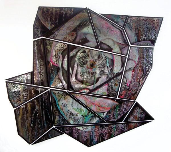 This work comprises of 18 individually framed pieces of glass which have been spray painted and form a shape resembling a shattered rose. The work was commissioned by York Art Gallery in 2008 as part of its contemporary interventions programme. The work was inspired by paintings, ceramics and glass in the gallery's collection including the portrait of Lady Francis Fairfax after Geeraerts and works by the York artist William Peckitt. The rose was inspired by a portrait of an Unknown Woman Holding a Rose by an unknown artist. Periton explained that he was particularly drawn to paintings of unknown subjects or by anonymous artists, ‘I became interested in this silent history that sits alongside the remembered histories of the great and the good’.