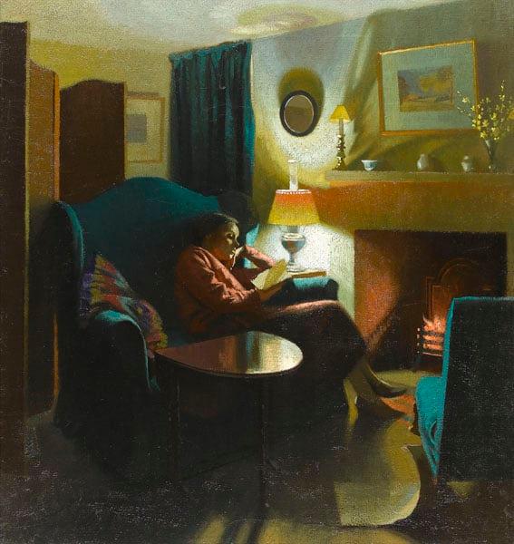 The artist's wife, Evelyn, seated reading