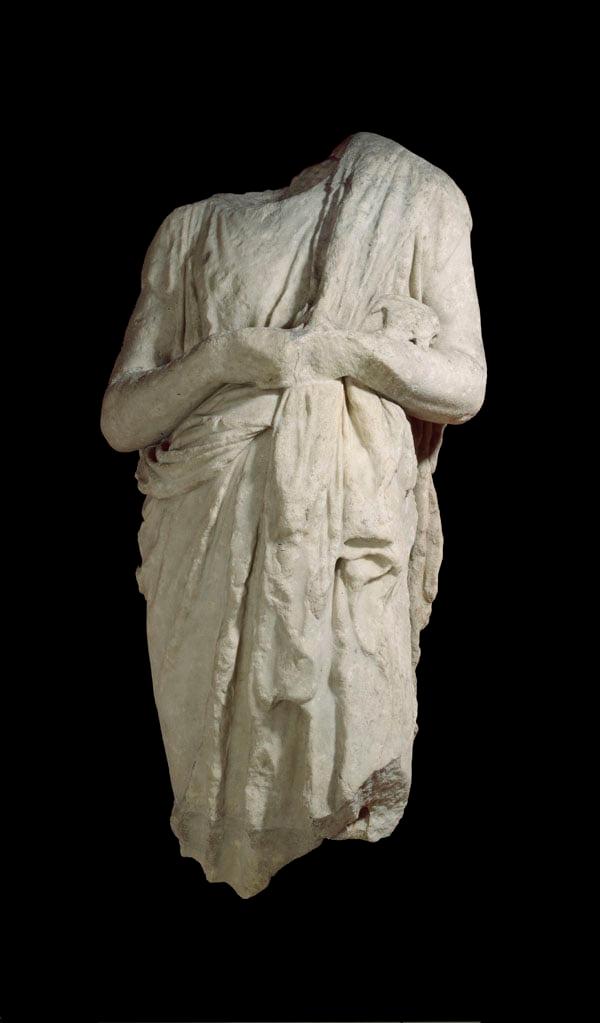The Arundel 'Homerus', part of an original Hellenistic Greek portrait statue, with hands joined, a unique pose in classical sculpture.
