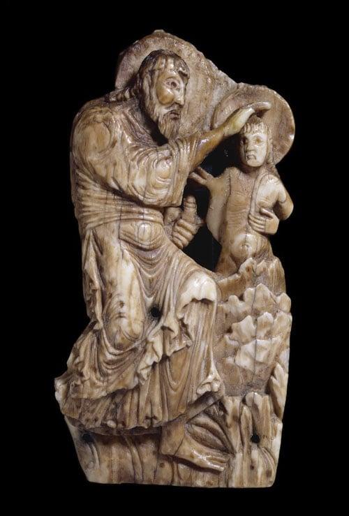This ivory is generally attributed to a Winchester workshop on the basis of the similarity of its figure style to that found in a group of late 10th or early 11th century illuminated manuscripts produced at Winchester. No other ivory carving was believed to reflect the fully-developed Winchester style to such a high degree or in so sculptural a manner.