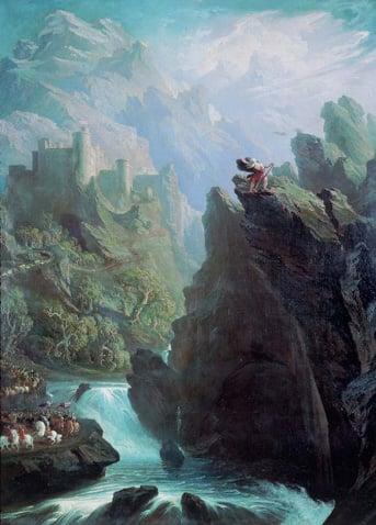 A vast apocalyptic painting illustrating Gray's Pindaric Ode 'The Bard,' founded on a Welsh tradition that Edward I ordered all the Bards to be put to death when he conquered Wales.