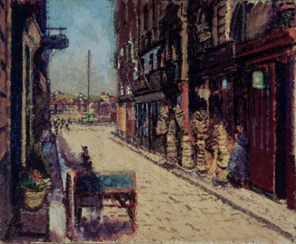 This picture, also known as The Handcart, has been in Scotland for some time. Although Aberdeen Art Gallery already owned a number of Sickerts, they had no example of his work in Dieppe.